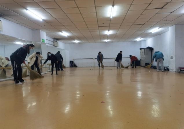 活动中,党员同志们撸起袖子,拿起扫把、拖布、簸箕等卫生工具,对逸夫楼地下活动室地面、墙面、镜子、储物柜等地方进行了全面清扫。大家分工明确,配合默契,将每一个卫生死角都清理的干干净净,用实际行动改善了师生教学环境,充分展现了党员教师不怕脏、不怕苦、不怕累的精神风貌。