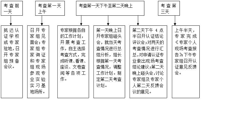 专家组长代表主持 1.评估机构介绍专家组情况 2.专家组代表对现场考查做必要说明(根据需要安排) 3.公司领导作教师教育情况补充说明 4.院系专业负责人作专业认证情况补充说明(根据需要集中或分组进行) 5.专家组围绕考查重点进行质询 |
